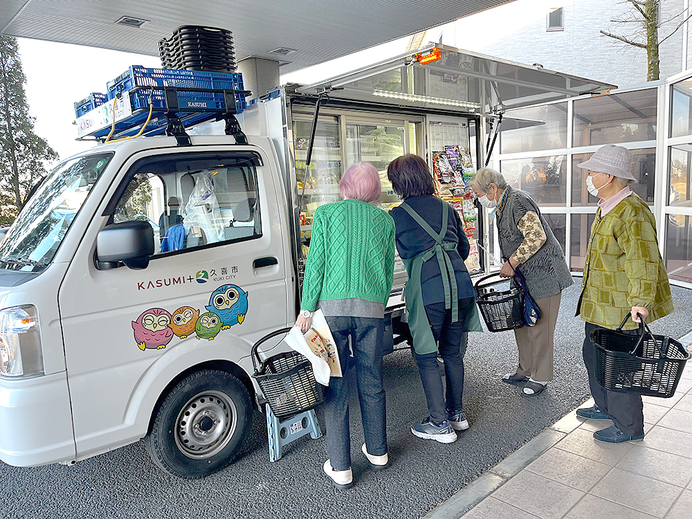 今回は、最近のハーウィル栗橋のトピックスを2つご紹介。 11月中旬から週に1回、金曜日の14:15に移動販売車がやってきています。「寒くなってお出かけがおっくう」「スーパーの人混みには行きたくない」という方も、歯磨き粉やトイレットペーパーなど、ちょっとした日用品が買えるので、「助かる〜」と、時間前から玄関前で待機しています。お惣菜も揃っていてとても便利なんです。特に大人気なのがアツアツの焼き芋です♪