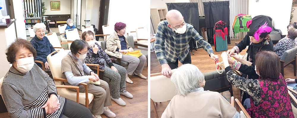 今回は「大宮マジッククラブ」さんをお迎えし、代表の斎藤さんと男性ゲストの2名による、本格的なマジックショーを開催しました!ハーウィル東大宮では、目の前で生のマジックを見るのが初めてという方が多く、皆さんとても楽しみにしていたようです。